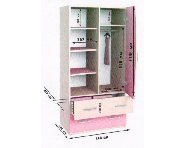 | Наполнение | Полки ЛДСП, ящики, Штанга для одежды |