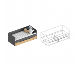 [name] => Кровать с ящиками 800 Стил темно серый лофт / дуб золотистый