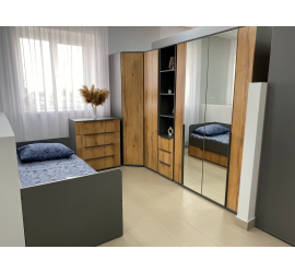 Шкаф двустворчатый для одежды Моника темно серый лофт / дуб золотистый сочетает в себе красоту и практичность, что делает ее идеальным вариантом мебели для украшения вашей современной комнаты.